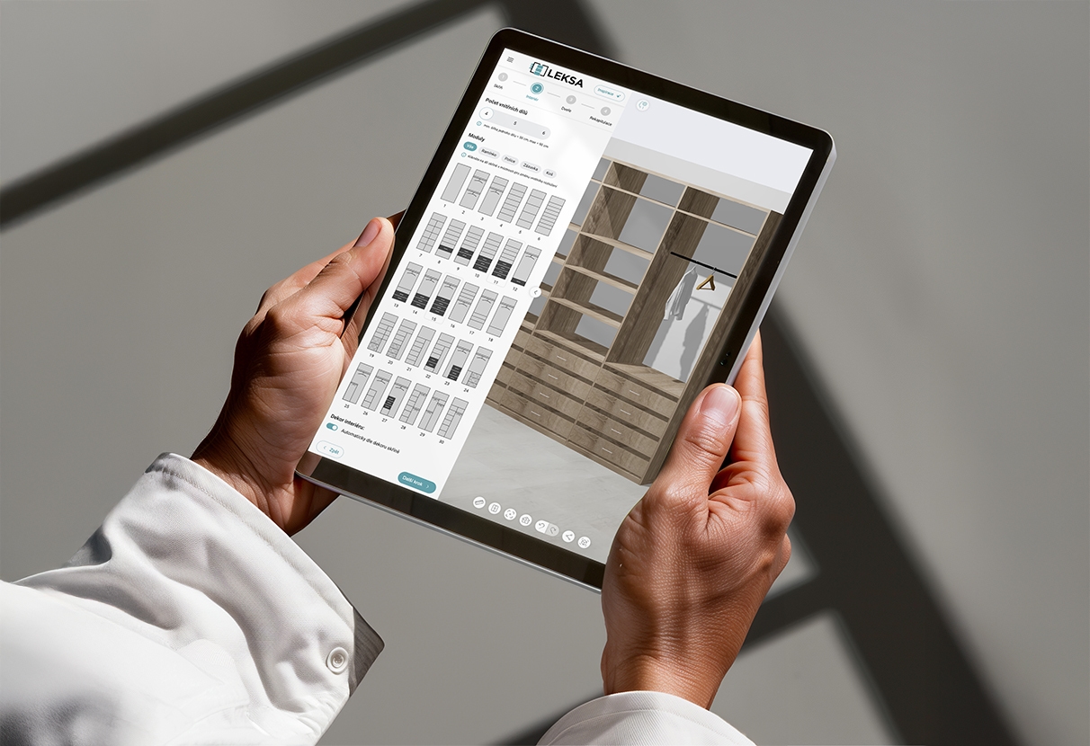 Pro výrobce vestavěných skříní jsme navrhli a vyvinuli 3D návrhář – interaktivní webové řešení, které provede zákazníka návrhem krok za krokem a převádí konfiguraci do kvalitní poptávky připravené k nacenění. Projekt zahrnuje UX návrh, vývoj konfigurátoru, vizuální design a integraci měření pro průběžnou optimalizaci konverzí.