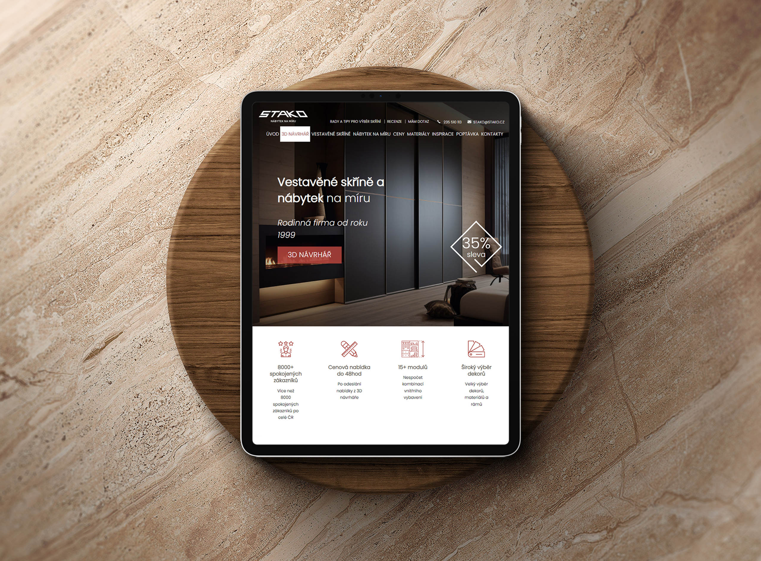 Pro výrobce vestavěných skříní jsme navrhli a vyvinuli 3D návrhář – interaktivní webové řešení, které provede zákazníka návrhem krok za krokem a převádí konfiguraci do kvalitní poptávky připravené k nacenění. Projekt zahrnuje UX návrh, vývoj konfigurátoru, vizuální design a integraci měření pro průběžnou optimalizaci konverzí.