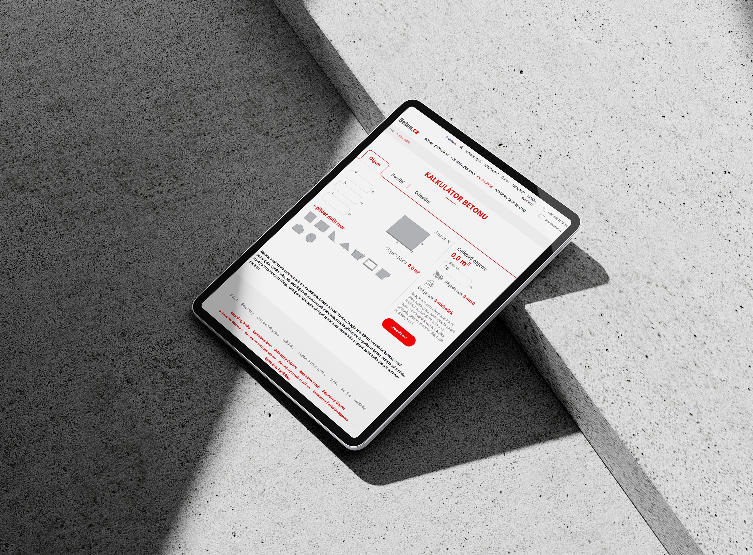 Kalkulátor objemu návštěvníkovi usnadňuje poptávku betonu.
