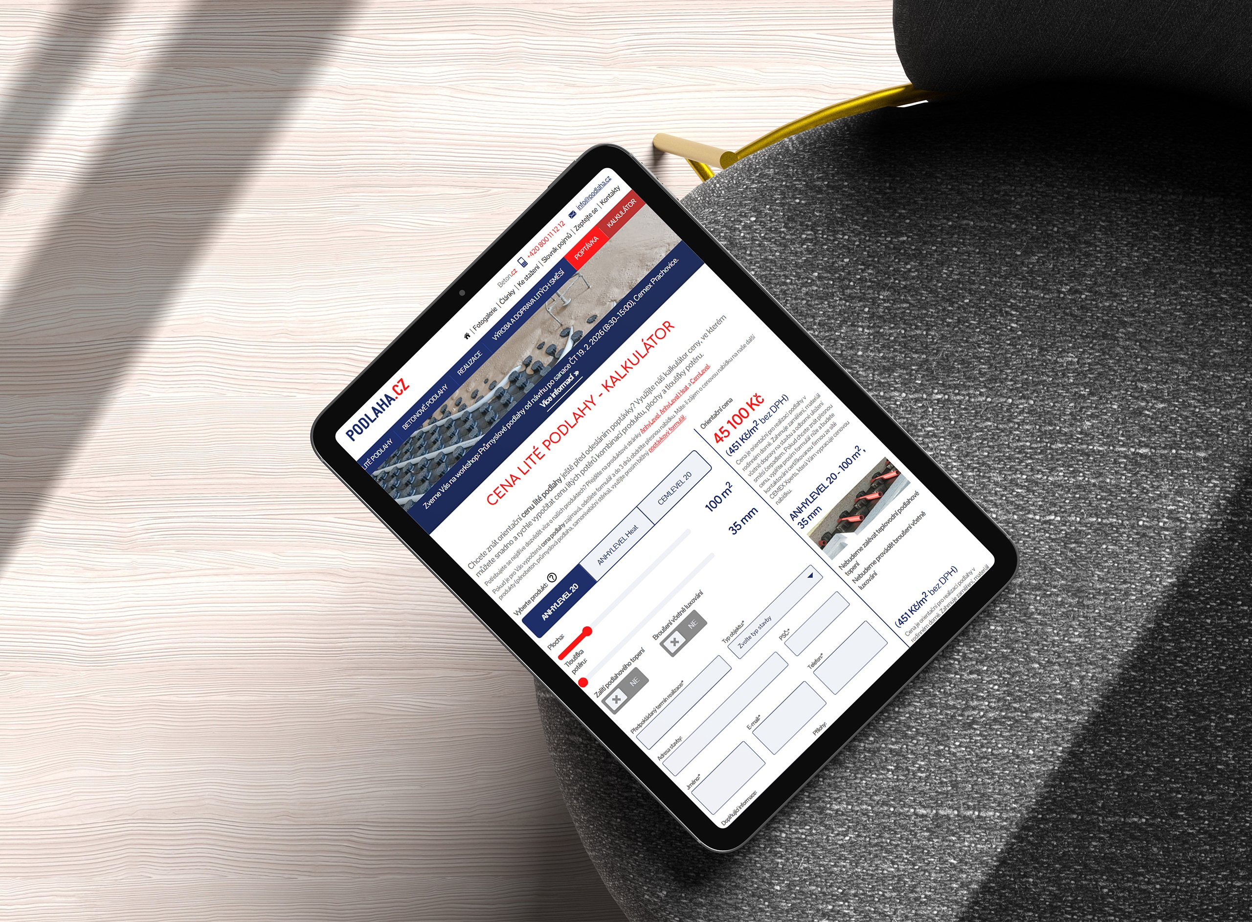 Díky kalkulátoru návštěvník rovnou vidí, jestli je pro něj cena podlahy akceptovatelná nebo nikoliv.